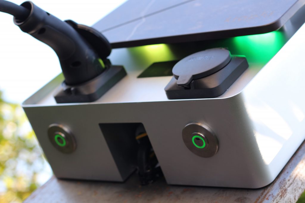Designed for two electric cars to charge simultaneously or alone. Ideal for at home or for a small boutique business.